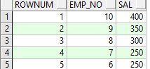 ROW_NUMBER() OVER ( ORDER BY SAL ) AS "ROW_NUMBER()"