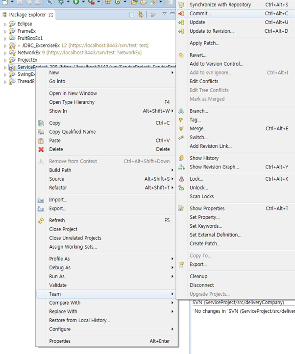 마지막으로 작업을 완료 한 프로젝트를 다시 SVN Server로 전송하는 방법을 소개합니다.