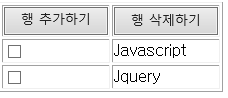 이번 포스팅에서는 테이블의 행의 추가/삭제를 javascript를 활용한 방법과 Jquery를 활용한