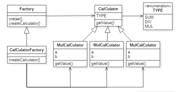 Calculator mulCalculator = factory.create(Calculator.TYPE.MUL, 5, 3);